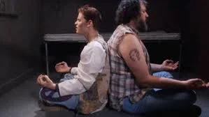 If God didn’t want Haim and Feldman to share the frame he would have given them different names. Yet Dream A Little Dream 2 does something very stupid in segregating its Coreys. It’s splits them up by having Haim’s Dinger, who is introduced wearing both a shirt and jeans with peace signs on them, thereby establishing the intensely pacifistic nature of his wardrobe, spend most of the movie in jail trying to conduct a seance to get back in contact with Robards’ offscreen yet constantly mentioned spiritual mentor.
