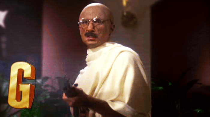 The movie is a, thus far unmade sequel to Gandhi called Gandhi II (Al had a lot on his mind at this point, what with the movies and the music and the starring and the writing and the acting and the soundtrack and whatnot, so I do not begrudge him not coming up with a funny joke subtitle) that trades in the original’s prestige-film stateliness for more of a violent, sexed-up blaxploitation vibe.