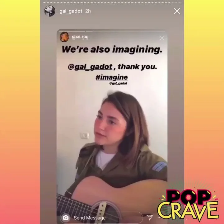 Alas, that is NOT where Gadot’s rambling introduction is headed, which is half as long as the song that follows and just as woefully misguided. Instead she starts talking about the “Italian guy” on the patio playing “Imagine” and how there was something so “powerful and pure” about “this video” before saying, “And it goes like this” before beginning the slow, agonizing, interminable process of singing “Imagine” terribly alongside 23 other famous people.