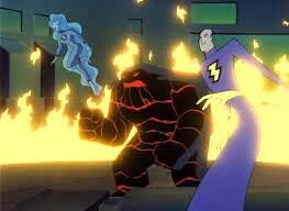 The Terrific Trio is a parody of its distinguished competition’s Fantastic Four. Slinky disappearing bombshell Freon is its answer to Invisible Woman/Sue Storm, 2-D Man is Batman Beyond’s take on Reed Richards/Mr. Fantastic while Magma combines the fiery magnetism of The Human Torch with the rock-like frame and existential angst of Thing.