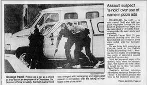 In a fit of delusion, Noid took a powerful handgun to a Domino’s in Chamblee, Georgia (where I live, weirdly enough) and took two employees hostage for five hours and demanded 100,000 dollars and a spotless white limousine as a getaway vehicle.