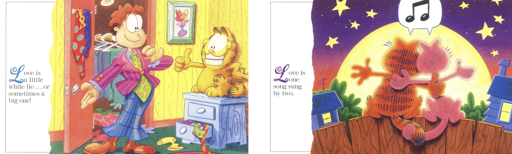 Garfield and Love Is… are antithetical. Garfield is cynical, selfish and fundamentally nihilistic, a sociopath who cares about nothing beyond satisfying his base desires. Love Is… is syrupy, sticky-sweet and nauseatingly “romantic.”