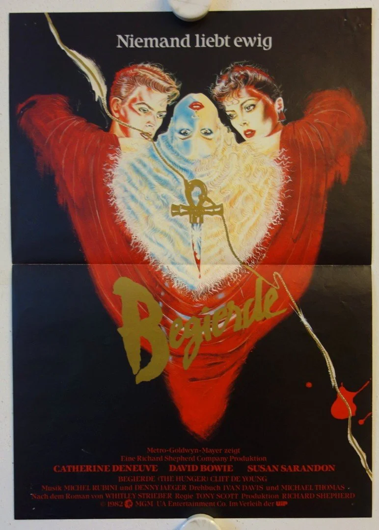 Adapted from a novel by Whitley Schreiber, The Hunger follows the ennui-drenched, angst-ridden, slow-motion adventures of Miriam and John Blaylock, a pair of old-world vampires played by Deneuve and Bowie, respectively. John lives in mortal terror of dying, so when his eternal youth disappears and he begins to age rapidly, he seeks out Dr. Sarah Roberts, a scientist specializing in aging played by Susan Sarandon in desperate hopes that she will be able to save him.