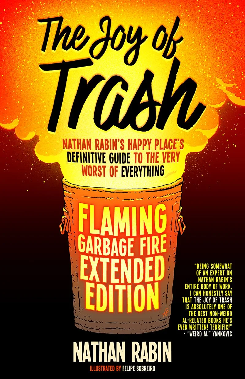 Check out The Joy of Trash: Flaming Garbage Fire Extended Edition at https://www.nathanrabin.com/shop and get a free, signed "Weird Al” Yankovic-themed coloring book for free! Just 18.75, shipping and taxes included! Or, for just 25 dollars, you can get a hardcover “Joy of Positivity 3: Can’t Stop Won’t Stop” edition signed (by Felipe and myself) and numbered (to 50) copy with a hand-written recommendation from me within its pages. It’s truly a one-of-a-kind collectible!