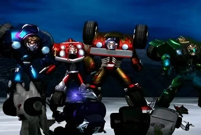 When they transform, the Motor-Vaters occupy a completely digital world realized by primitive CGI that was state-of-the-art at the time but now looks mesmerizing in its garish ineptitude.