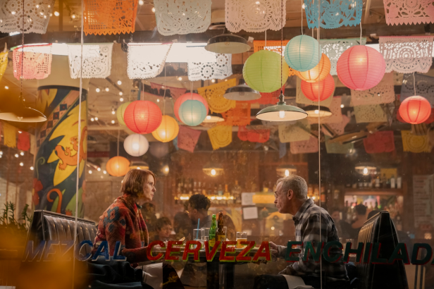 This very realistic scene serves a metaphorical purpose. If a woman of a certain age chooses to be alone rather than base her identity around being part of a couple, society will assume that she is a sad loser to be pitied and treated like a small child, even if she looks like she could buy the restaurant where she’s eating, not just purchase a meal.